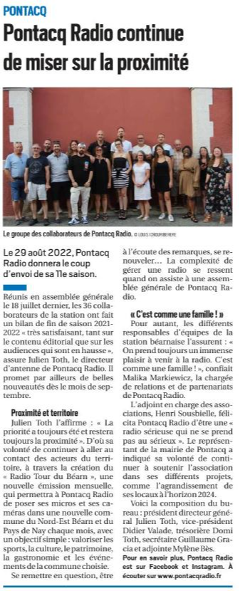 Compilation d'articles dans la PQR (La République des Pyrénées / La Dépêche du Midi / La Semaine des Pyrénées). Merci à nos confrères de se faire l'écho de nos activités.