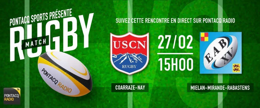 Réécoutez le match entre l'US COARRAZE-NAY & l'EAB XV (Mielan-Mirande-Rabastens), diffusé sur Pontacq Radio le dimanche 27 février 2022 !