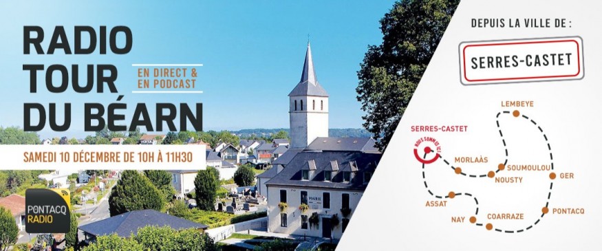 Réécoutez l'émission « RADIO TOUR DU BÉARN » en direct de Serres-Castet, diffusée le samedi 10 décembre 2022 de 10h à 11h30 sur Pontacq Radio.