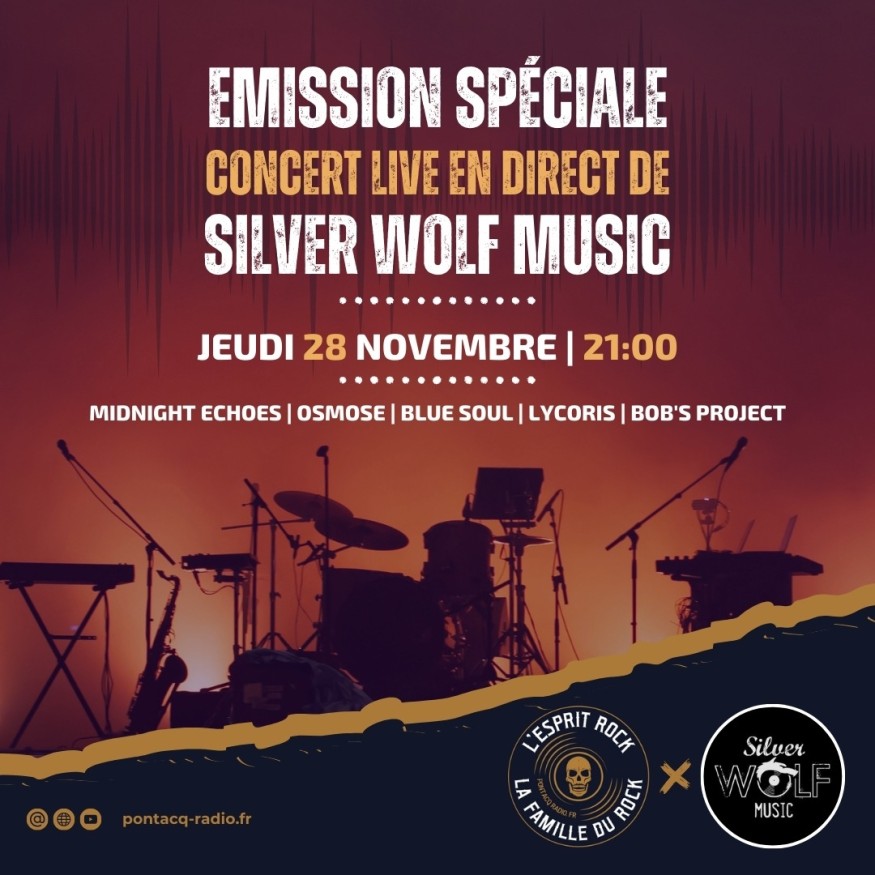Émission délocalisée depuis le magasin SILVER WOLF MUSIC de Lons, avec les groupes : - « Bob's Project » ;- « Lycoris » ;- « Midnight Echoes » ;- « Osmose » ;- « Blue Soul ».